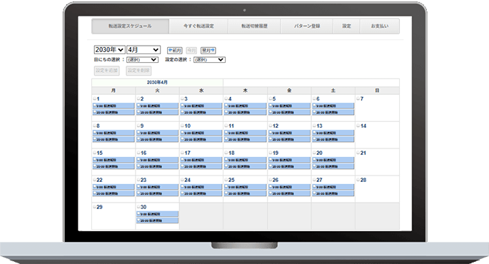 ひかり電話転送では1年分の転送設定を事前に予約可能。